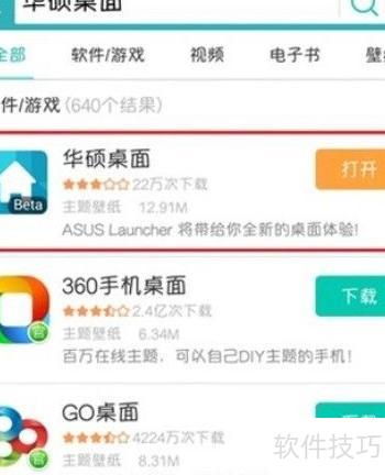 8、 卸载后,打开华硕应用商城,搜索华硕桌面,下载并重新安装即可。