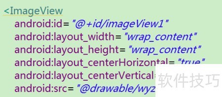 3、 在布局文件中添加一个ImageView控件,设置其id属性,并将预先准备好的图片资源加载其中。