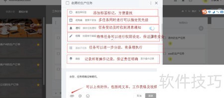6、 员工在接到上级任务后,只需明确自身职责,并在评论区及时更新工作进展。即使同时处理多项任务,通过合理标注时间和设定优先级,也能有条不紊地推进。这种层级清晰的生产安排,使每位成员专注各自分工,职责分明,既减轻管理负担,又提升协作效率,便于整体进度的把控与调配。