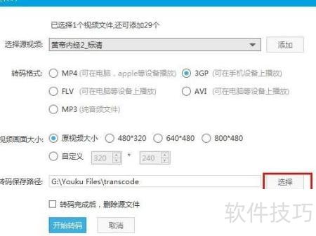 6、 点击选择保存位置,即指定转码后视频文件的存储路径,可自行设定目标文件夹。