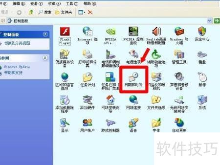 2、 控制面板中调整日期与时间
