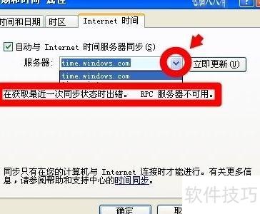4、 同步失败时,可点击▼更换时间服务器并立即更新;若仍无效,可能是时间服务未启用。