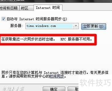 7、 若提示同步失败,说明时间服务未启动,需按步骤开启Windows Time服务即可解决。