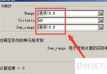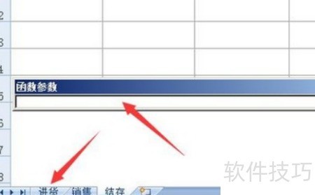 7、 确认后,页面将弹出函数参数窗口,点击第一行末尾的向上箭头,使参数独占一行,随后点击进货表即可完成操作。