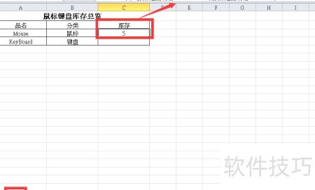 2、 将工作表1更名为库存表,并按要求设置表格样式。
