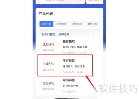 2、 进入定期存款,选择零存整取功能