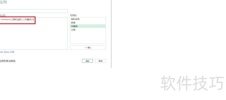 5、 添加自定义列,在弹出的对话框中输入公式Text.Contains(,),用于判断物料名称列是否包含指定关键词,若包含则返回true,不包含则返回false。该操作可帮助快速筛选符合条件的数据内容,提升数据处理效率。