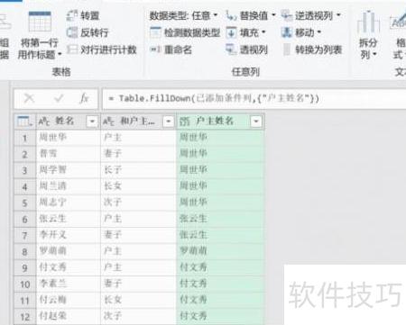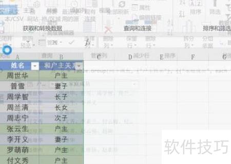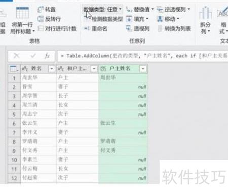 3、 选中刚添加的户主姓名列