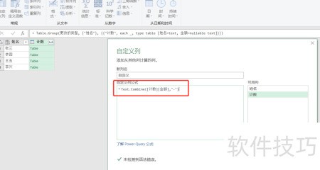 3、 添加自定义列,输入公式=Text.Combine(,-),确认即可完成操作。