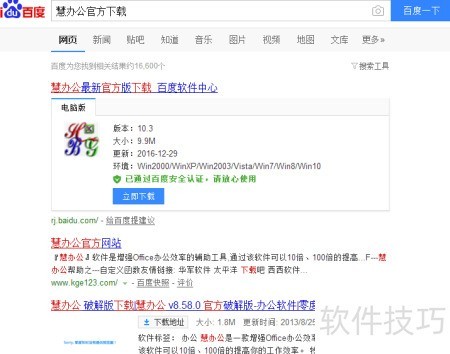 1、 搜索慧办公,找到所需软件的官方网站。
