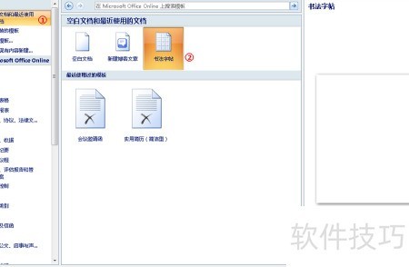 3、 点击空白文档与最近使用,找到书法字帖图标,然后按下创建按钮即可。