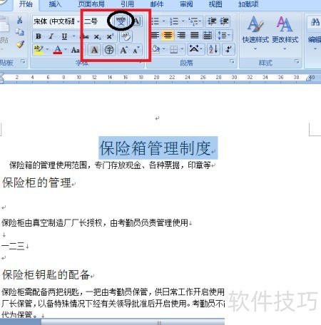 13、 在开始选项卡的字体组中,点击带圈字符按钮并选择所需样式。