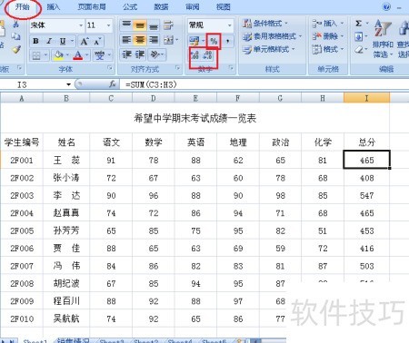 13、 在开始选项中选择设置单元格格式,点击数字即可快速调整小数点、百分号或千分位符号。