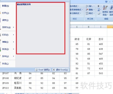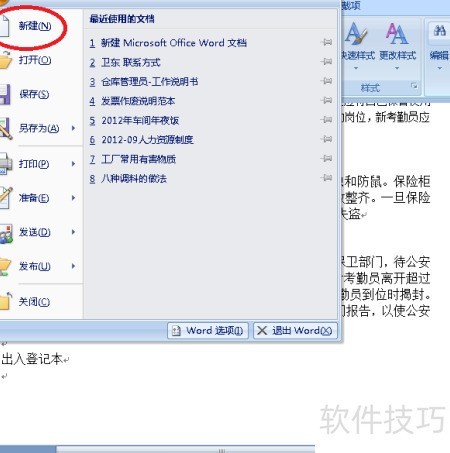 2、 点击Office按钮,弹出窗口将显示最近打开的文档,方便快速访问和查看历史记录。