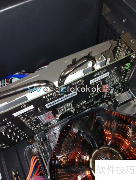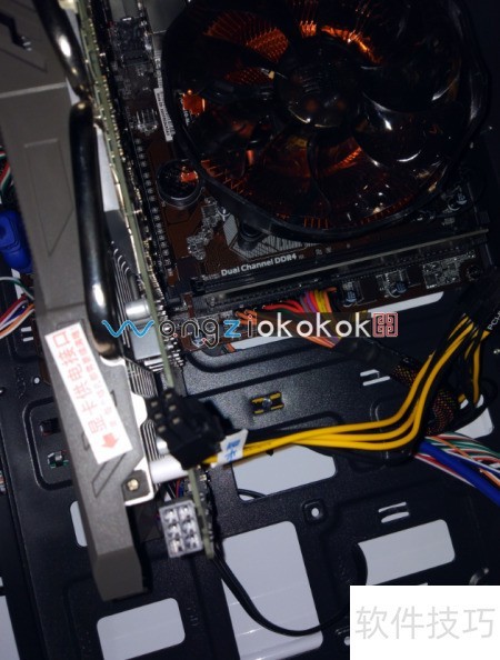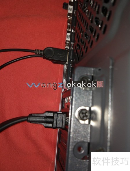 3、 检查显卡供电接口的电源线是否已正确连接,未接上将无法正常工作,请参照图示确认。