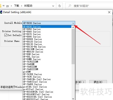 7、 接着选择打印机型号,此处为GP-C80180 Series。