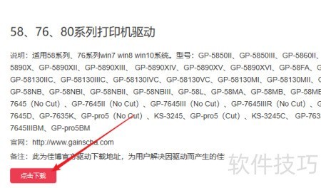 1、 访问佳博官网(www.poscom.cn),按打印机型号下载对应驱动,本次提供的是58、76、90系列机型的打印驱动程序。
