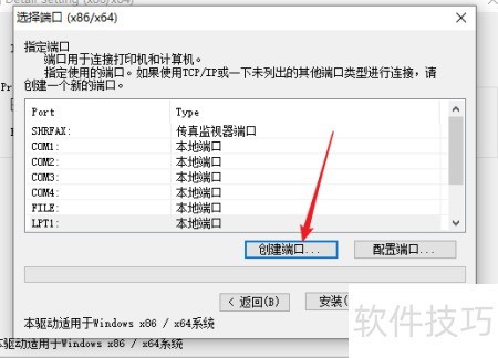 9、 点击创建端口按钮,若为USB端口则跳过此步,直接选择相应USB端口即可。