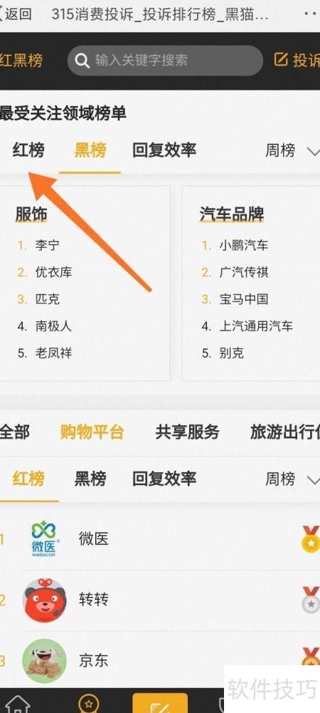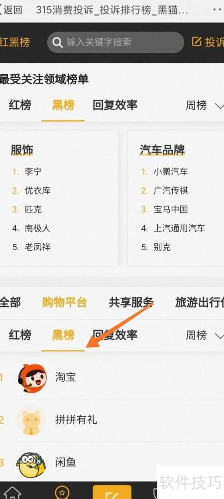 在微博钱包页面进入黑猫投诉,可查看各商家或平台处理投诉的效率排名。