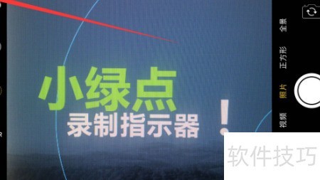 1、 拍照时屏幕右上角会出现一个小绿点,所示。