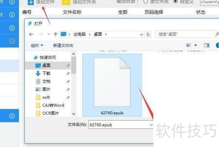 3、 若需将EPUB格式电子书转为Word,可点击图中添加文件按钮,选择需要转换的EPUB电子书文件即可完成导入操作。