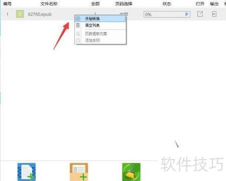 5、 打开电子书后,可批量添加文件,随后右键点击相应条目,选择开始转换即可执行转换操作。