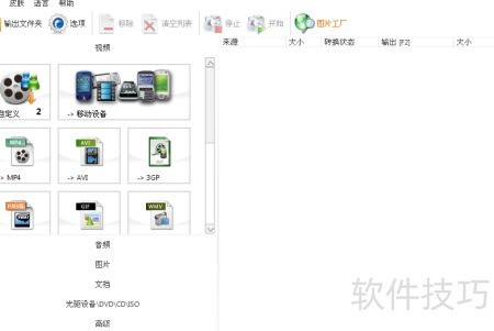 1、 安装并打开格式工厂软件即可使用。