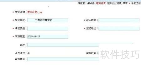 5、 请按图示要求准确填写带星号内容,确保上传文件在有效期内,提交后2至3天内可查询审批结果。