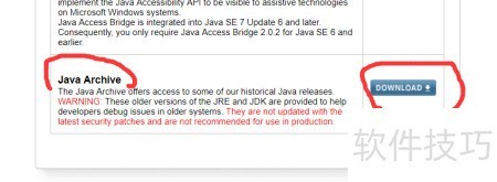 5、 在页面右侧底部找到Java Archive,点击其右侧的下载按钮即可获取JDK历史版本。
