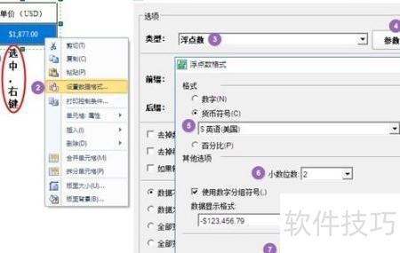 6、 设置小数位数与货币符号。