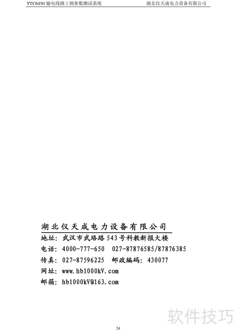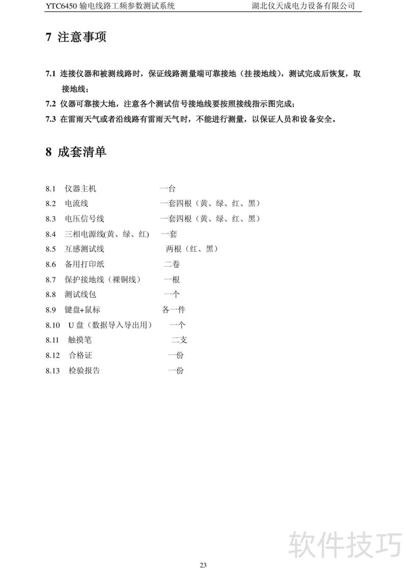 、 本书为仪天成YTC6450输电线路工频参数测试系统说明书,详述产品操作步骤与常见问题处理方法,帮助用户正确使用设备并及时排除故障。