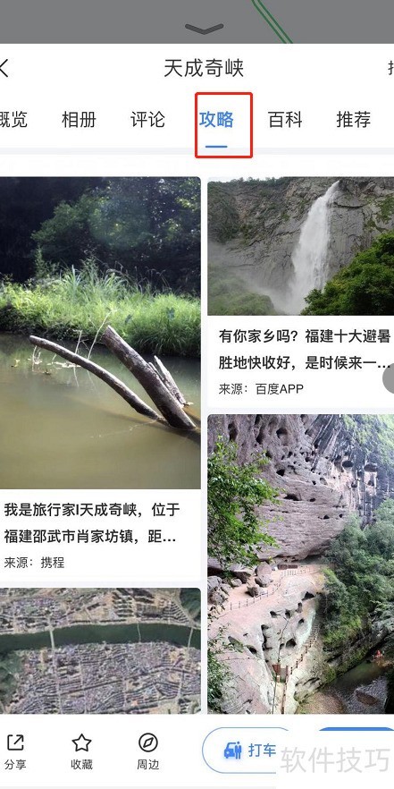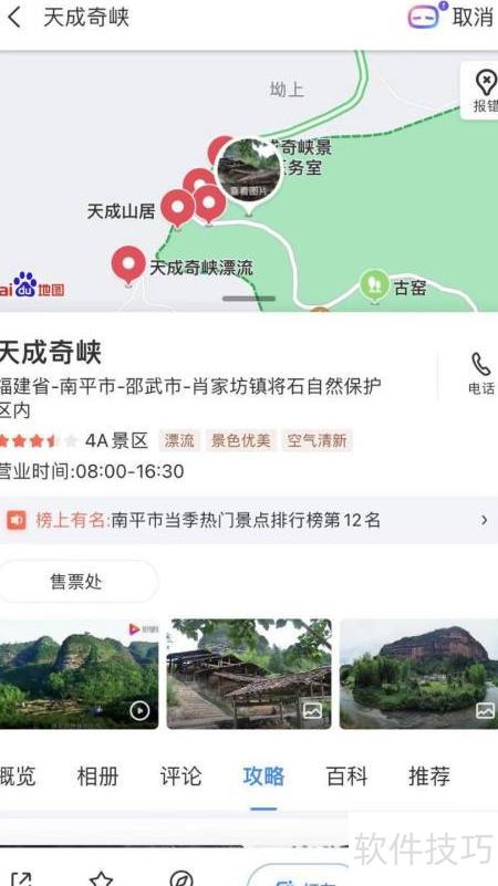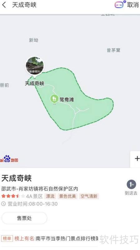 1、 打开百度地图,搜索天成奇峡即可找到位置。
