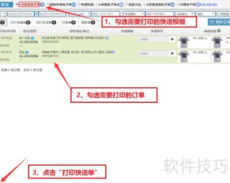 3、 打印快递单:选择订单后点击打印即可完成。