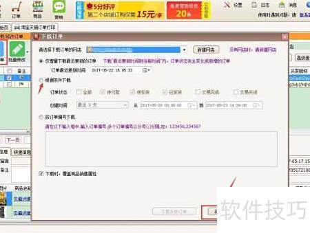 5、 点击下载订单,按条件筛选后即可开始下载。