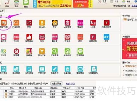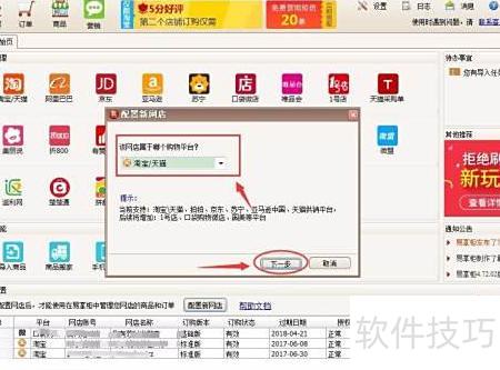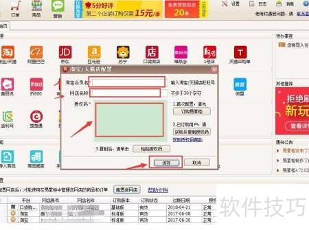 3、 选择平台,按提示填写店铺信息并保存,完成配置。