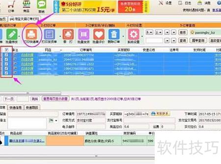 6、 批量选择待打印订单,点击快递单打印按钮。