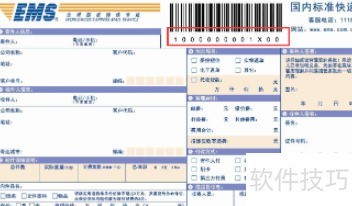 2、 EMS快递单号分别位于单据上部居中及底部位置。