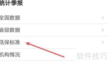10、 在统计季报页面,选择低保标准选项。
