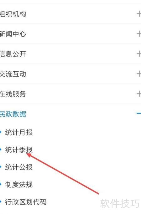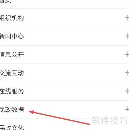 8、 点击菜单栏中的民政数据选项。