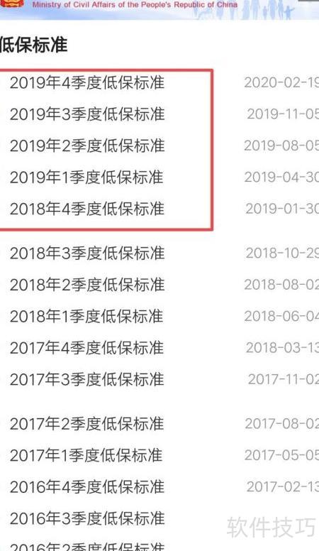 5、 查看低保标准列表,选择所需查询的季度即可获取相应数据。