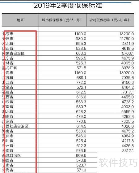 12、 在低保标准页面,可查看各省份城乡对应的低保金额。
