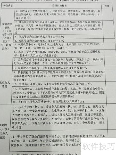 2、 社区民政专干在收到申请报告及相关材料后,向申请人发放苏仙区城镇家庭困难情况综合调查评估表,由申请人自行填写并完成评分。
