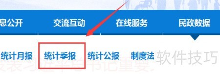 1、 访问官网首页,选择顶部菜单中的民政数据选项。