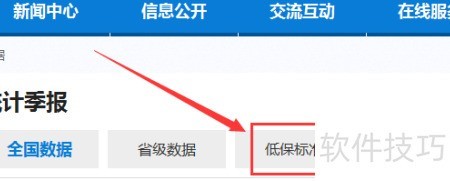 3、 在统计季报页面,点击低保标准选项。