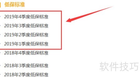 4、 查看低保标准列表,选择所需查询的季度信息。