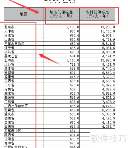 5、 进入低保标准页面,可查看各省市城乡低保金额。