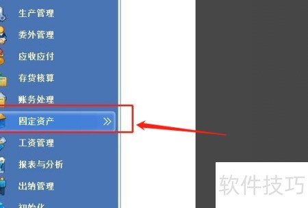 1、 打开财务软件主界面,选择固定资产功能模块。