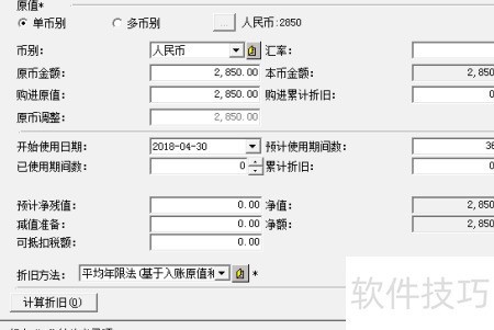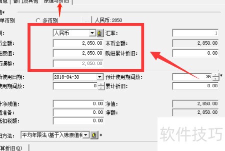 6、 在固定资产资料的原值与折旧栏中,准确填写对应金额数值。
