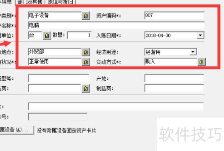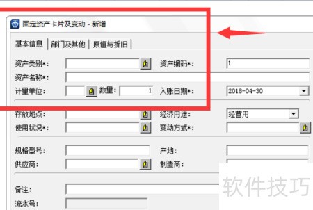 3、 随后将弹出固定资产新增卡片界面。
