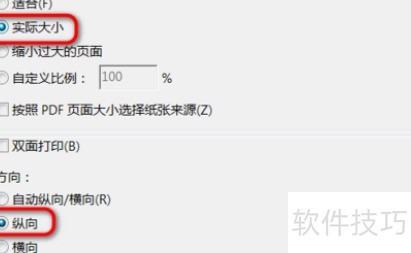 8、 进入打印界面,选择纵向布局和实际尺寸进行打印。